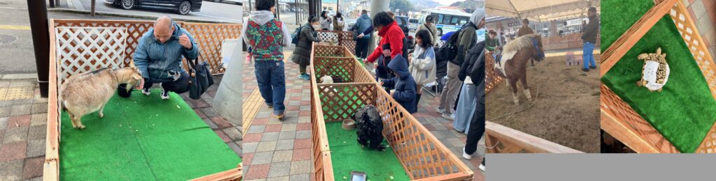 食事の後はイベントの行われていた多久駅へと向かいました。動物たちとふれあうことができ、かわいい小さな動物目当てに、たくさんの人でにぎわっていました。
