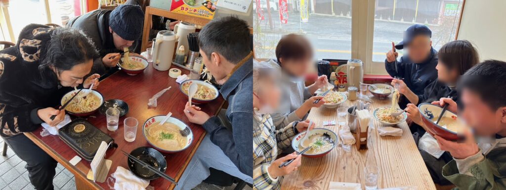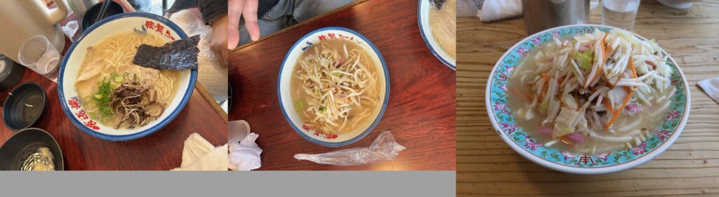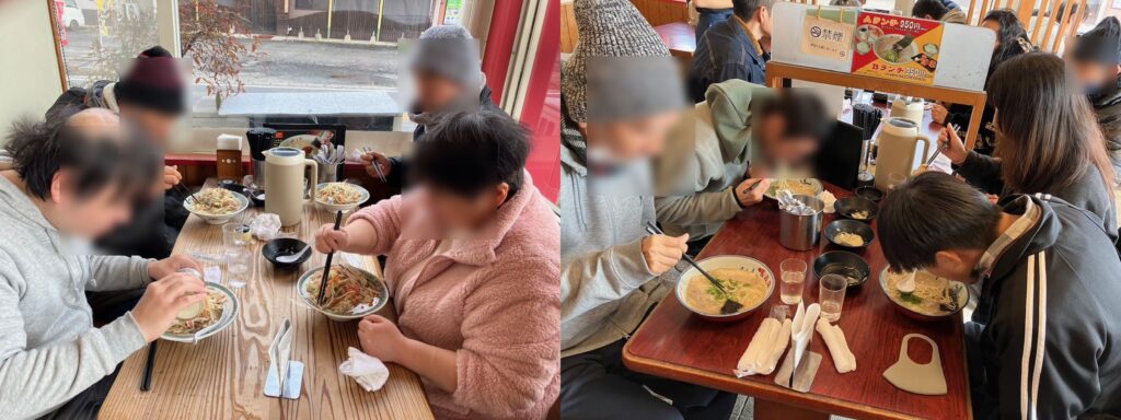 メニューはラーメン、野菜ラーメン、ちゃんぽんからみんなに選んでもらいました。どれもおいしくみんな大満足でした。