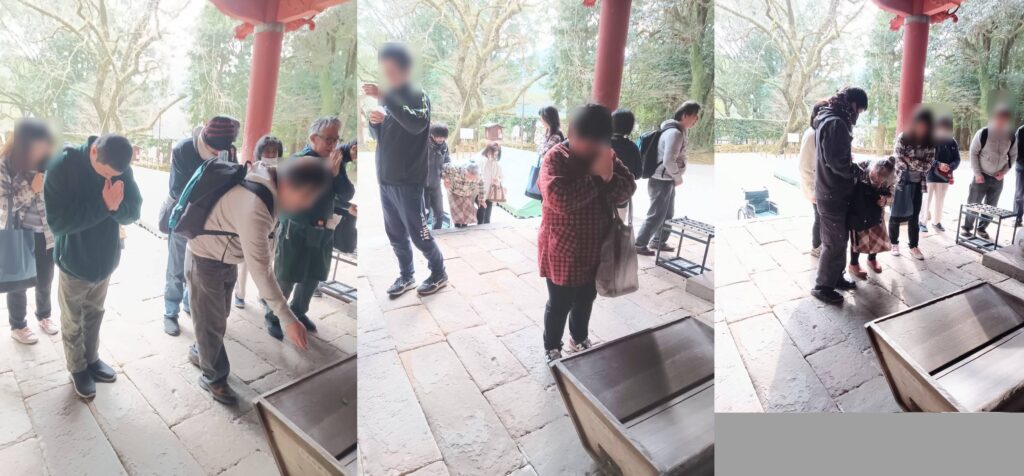 寒い中みんな奥のほうまで歩き、それぞれ願い事をしてきました。