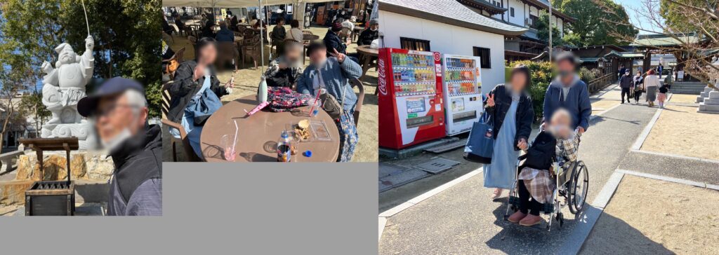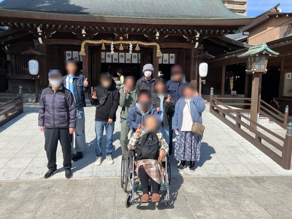佐嘉神社近くの有名なまんじゅう屋さん「鶴乃堂」さんの肉まんをたべることでした。当日も行列が出来ており大人気で買った後、神社の境内でみんなでおいしくたべました。