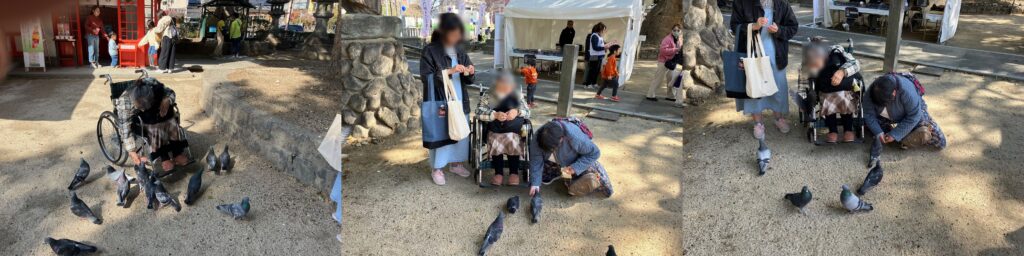 ハトの餌やりも,佐賀神社恒例の行事でみんな盛り上がりましたよ。